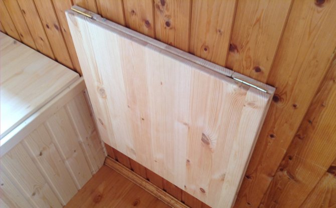 La housse de siège était fixée avec 2 charnières. Les charnières sont vissées à l'avant, la structure est donc ouverte par personne. C'est l'option la plus simple, elle se fait plus rapidement que d'autres. Pour rendre la couverture rigide, nous l'avons renforcée avec 3 lattes.