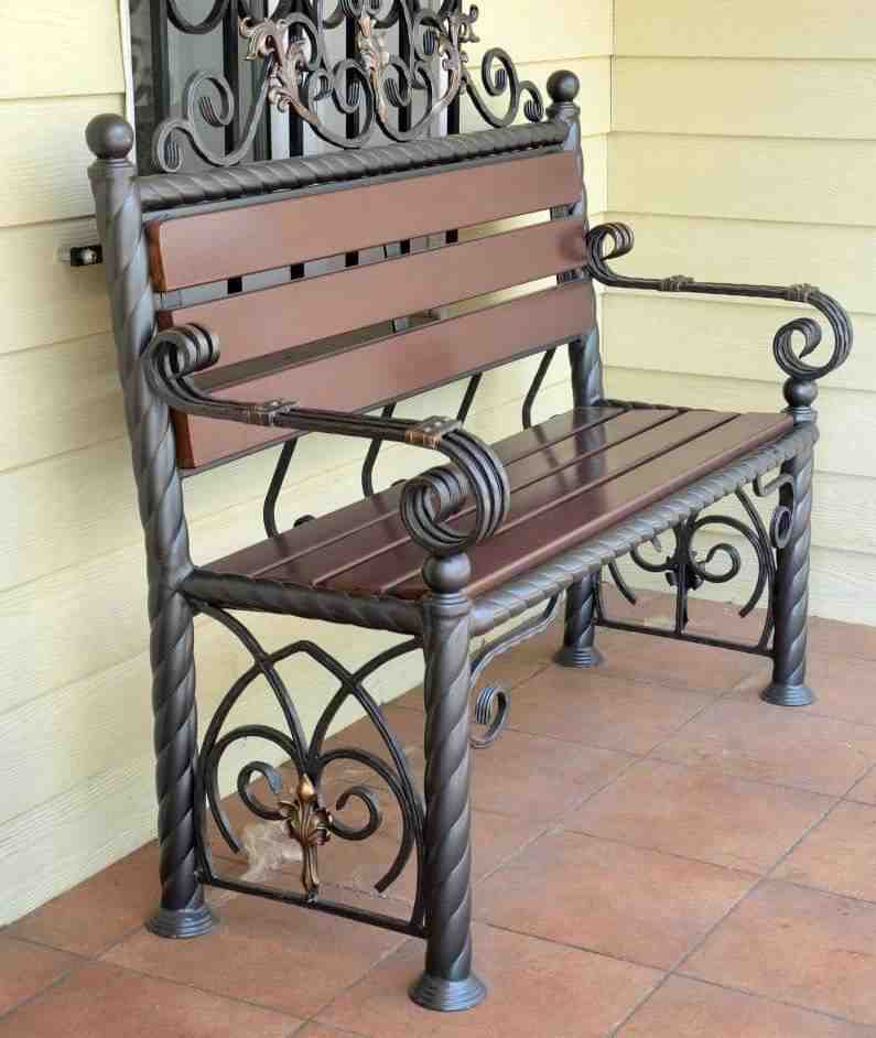 Nous avons proposé notre propre version. Réalisez le cadre à partir d'une barre de 40 * 40 mm. Installez une nervure à l'intérieur pour répartir la charge sur la zone de couverture. Faites-le lui-même en bois massif de 28 mm. Sur les côtés, le banc était cousu avec des planches à clin.