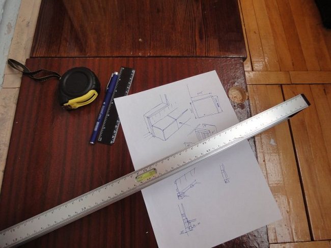 - Pour prendre des mesures, vous aurez besoin d'un ruban à mesurer; pour un marquage précis, il est préférable d'avoir une règle en acier, une équerre de menuisier et un crayon à portée de main.