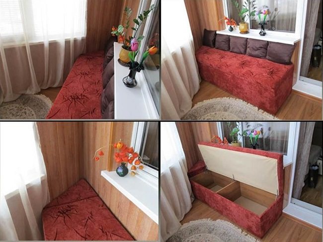 Lors du choix d'un canapé prêt à l'emploi pour une loggia, il est important de se rappeler que tous les modèles ne disposent pas de boîtes internes ou de niches pour les accessoires ménagers. Un modèle simple de banc avec une boîte pour les choses est facile à fabriquer de vos propres mains.