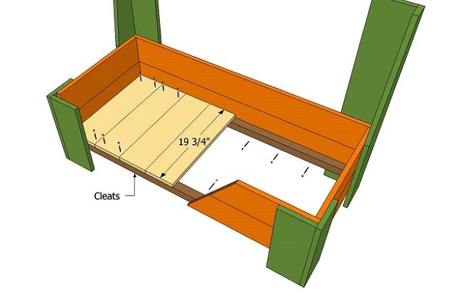 - Une option simple pour fixer le fond consiste à attacher deux barres de l'intérieur de la partie inférieure de la structure, puis des planches transversales y sont clouées.