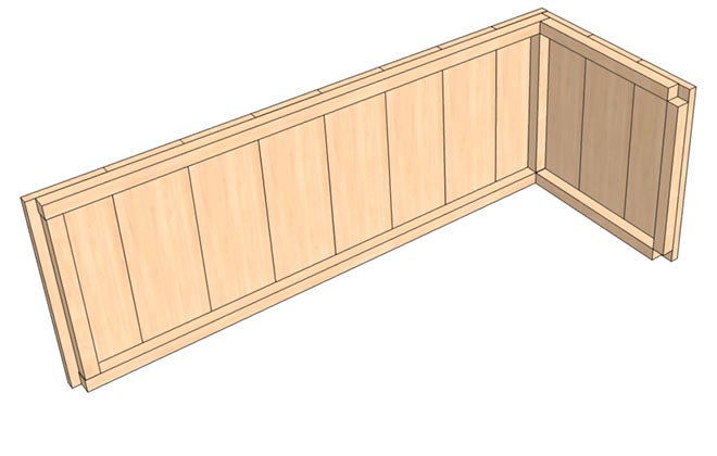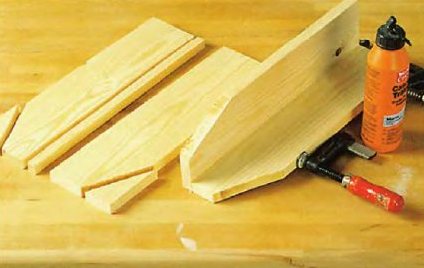 Le cadre a été assemblé à partir de lattes d'une section de 20 * 45 mm. La paroi avant était en doublure. Le couvercle supérieur a également été monté à partir de la doublure. Les extrémités étaient fermées avec un coin décoratif.