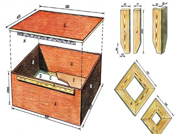 Avant de commencer le processus de travail, il convient de rappeler que la version classique d'une boîte avec un banc se compose des parties principales: