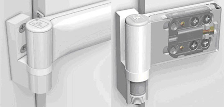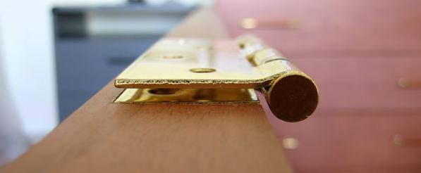 La charnière déjà intégrée dans l'embrasure de la porte