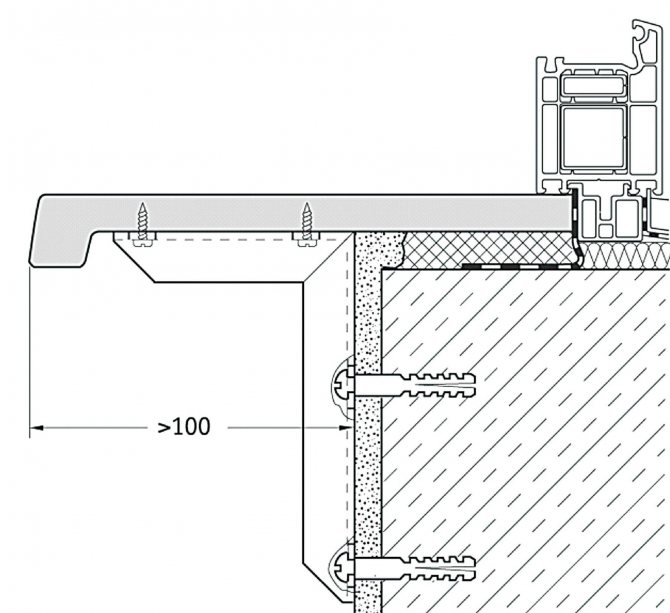 Schéma d'installation d'un rebord de fenêtre en plastique