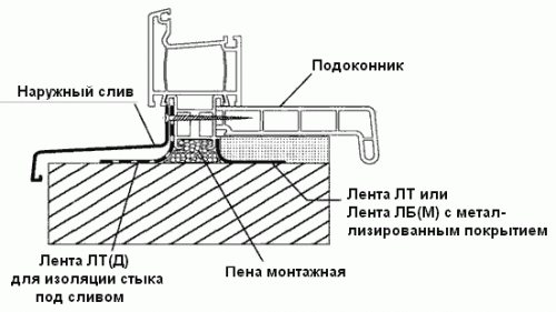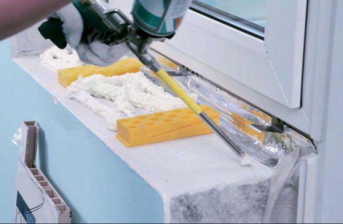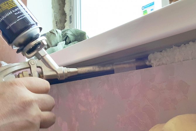 - Pour la fixation du rebord de la fenêtre, de la mousse est utilisée, mais l'élément lui-même n'est installé qu'après une légère expansion.