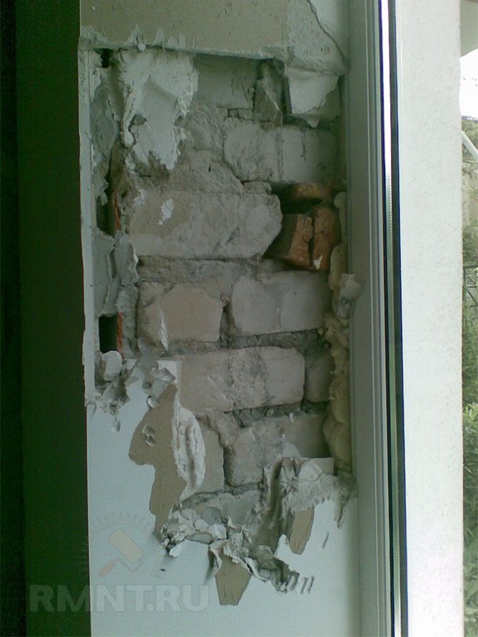 - Effritement du mur adjacent au rebord de la fenêtre ou destruction complète du revêtement lui-même. Cela conduit souvent au fait que le rebord de la fenêtre peut tomber au moment le plus inopportun. De plus, la qualité de l'étanchéité dans ce cas est fortement dégradée, ce qui permet à l'air froid de l'extérieur de pénétrer librement dans la pièce. Ceci est particulièrement désagréable en hiver.