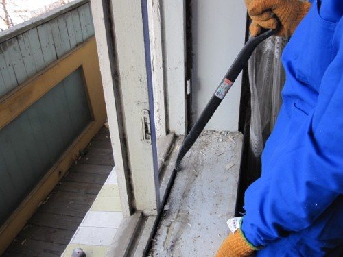 - Préparation de la base. Il est nettoyé de la saleté, de la mousse de polyuréthane et des restes de mortier de béton. L'isolation est remplacée sous le cadre et à l'intérieur de l'ouverture de la fenêtre.
