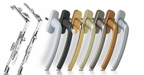 Appareils populaires avec une serrure, ainsi qu'une serrure sous la forme d'un bouton, provenant des entreprises de Hoppe. Maco, Roto, Kale.