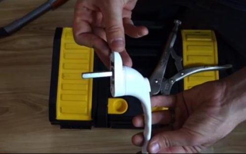 - Faites pivoter la poignée cassée en position horizontale. Si cette action ne peut pas être effectuée avec vos mains, vous pouvez utiliser des pinces. Si le mécanisme de l'obturateur n'est pas endommagé, la fenêtre sera ouverte. Sinon, vous pouvez remettre le mécanisme dans la bonne position après avoir retiré la poignée.
