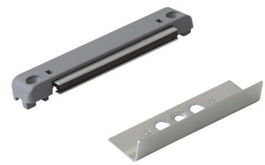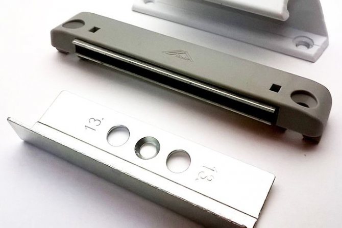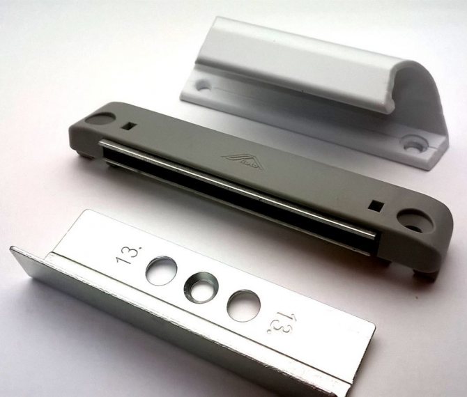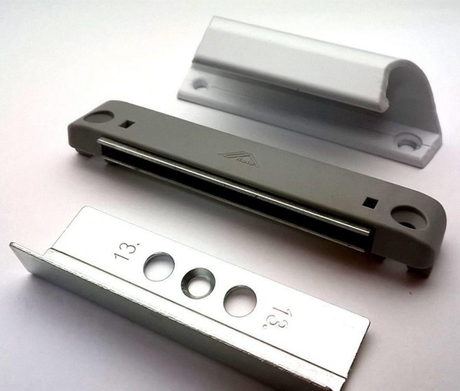 Un tel dispositif de verrouillage est optimal en termes de prix et de fiabilité, n'est pas fantasque et ne craint pas du tout les changements de température et d'humidité. Avec une ouverture et une fermeture fréquentes, ces loquets magnétiques ne s'usent pratiquement pas, ce qui garantit leur fonctionnement à long terme et sans problème. De plus, de tels mécanismes de verrouillage sont généralement de taille compacte pour maintenir l'esthétique globale de la porte en plastique.