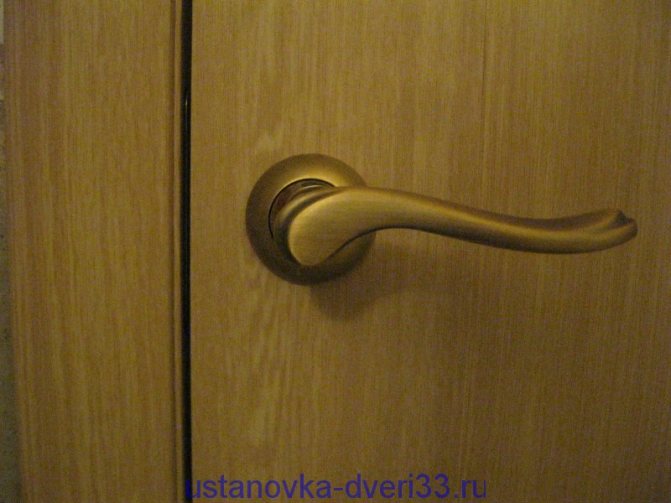 La poignée-coquille-pétale est montée sur la porte de la même manière. Pour un châssis avec un verrou magnétique, son absence n'est pas critique, cependant, pour un verrou à rouleau mécanique, il est nécessaire. Le travail prend un minimum de temps: