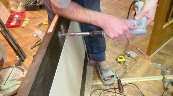 Le perçage initial est effectué à l'aide d'un foret à plume à une distance égale à la moitié de sa lame. Par la suite, l'alignement est effectué à l'aide d'un foret et d'un fraser conventionnels, ou d'un ciseau de taille appropriée.Une barre de mécanisme de verrouillage est placée sur la partie d'extrémité de la porte pour le marquage. Les bords de la pièce sont tracés avec un couteau tranchant pour déterminer l'emplacement du retrait du revêtement décoratif de la porte. À l'aide d'un ciseau, l'emplacement de la future installation de la bande est coupé à un point tel qu'après l'installation de la doublure, la partie d'extrémité est absolument plate sur toute la longueur.
