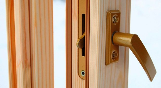 De ce qui précède, une conclusion peut être tirée: les loquets pour portes de balcon sont non seulement fiables, mais également extrêmement simples. Jetons un coup d'œil à la configuration la plus complexe. C'est sur une porte en bois.