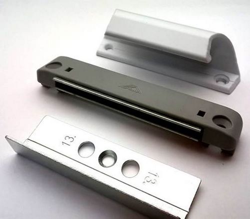 Il est nécessaire de fixer le percuteur de manière à ce que la rainure soit strictement opposée à l'élément roulant ou au champignon. L'avantage lors de l'installation d'une serrure magnétique est la précision minimale requise. La grande longueur de l'élément et de la bande vous permet de garantir un serrage complet, même avec une erreur assez grossière. Pour installer la poignée, qui offre une ouverture pratique du châssis, utilisez de petites vis autotaraudeuses.