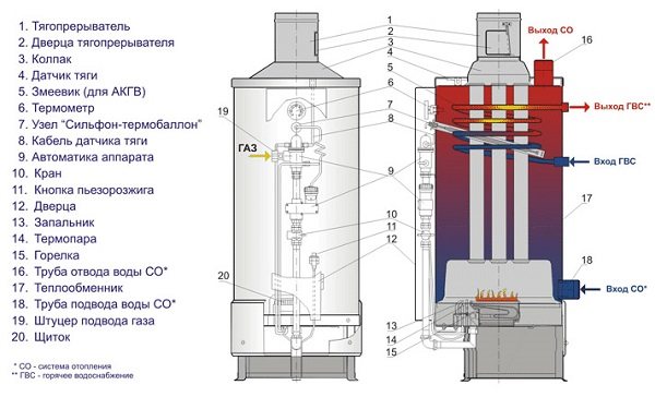 Prenons l'exemple des chaudières AOGV en utilisant l'exemple des chaudières populaires fabriquées à l'usine de la ville de Joukovski, produites par ZhMZ.