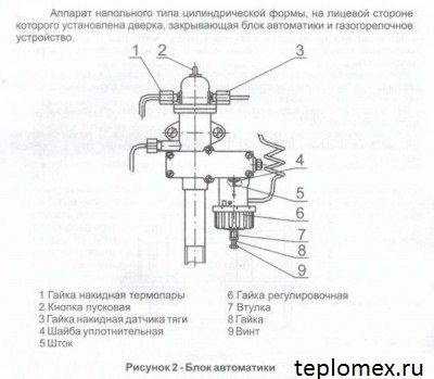 - Tourner le bouton de réglage en le réglant sur 50-60 ° C. Appuyez à fond sur le bouton de démarrage, puis relâchez-le 2 à 3 mm et après 8 à 12 secondes. prendre des lectures de l'appareil. Le temps de réponse de l'équipement automatique de la chaudière à gaz Joukovski AOGV-23 en termes de poussée est inférieur à 10 secondes. en l'absence de tirage dans la cheminée.