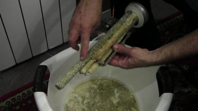 - Produit chimique - le tartre est gratté avec un couteau et après que l'élément chauffant est placé dans une solution pour éliminer ces dépôts.Là, il reste plusieurs heures.