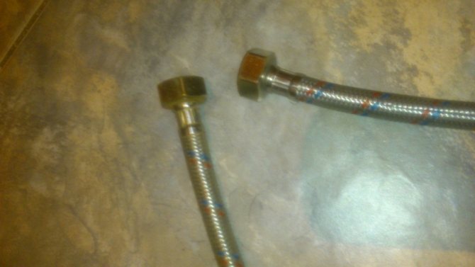 - Du côté opposé, nous attachons: à l'alimentation en eau - froide et au mélangeur - chaude.