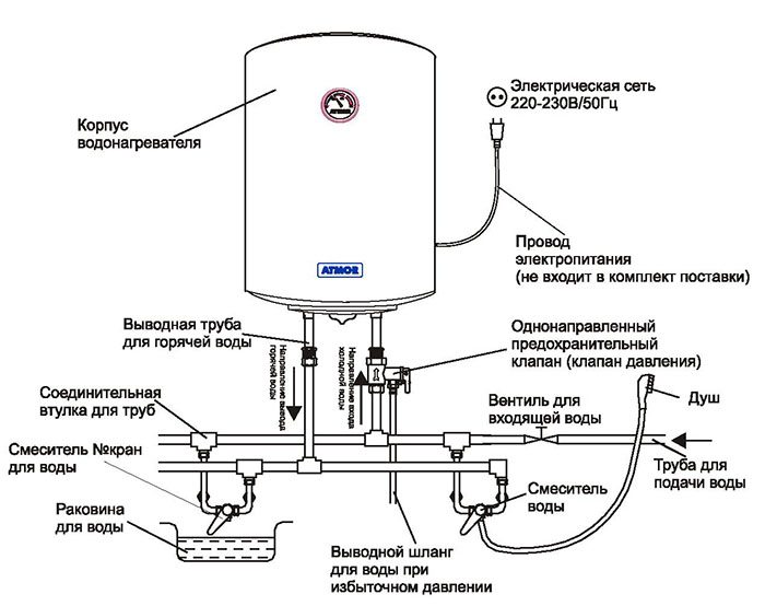 Schéma de câblage pour le raccordement du chauffe-eau. (Cliquez pour agrandir) Selon les instructions, avant de brancher l'appareil à l'électricité, vous devez le remplir d'eau.