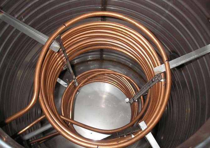 Échangeurs de chaleur internes en cuivre du ballon de stockage.