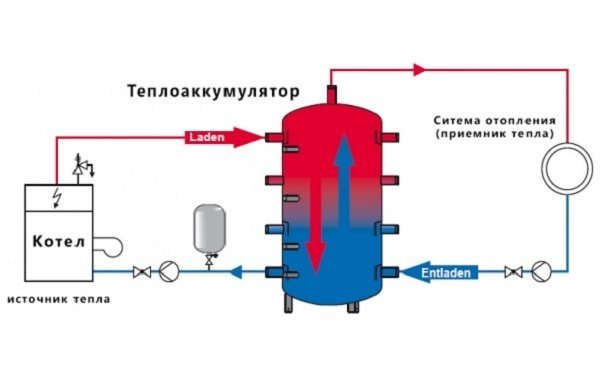 Important! Les accumulateurs de chaleur assurent la sécurité des équipements de chauffage et du système de chauffage domestique contre un refroidissement excessif, mais aussi contre la surchauffe. La tâche du réservoir de stockage est d'éliminer l'excès de chaleur généré par l'unité de chauffage à son apogée.
