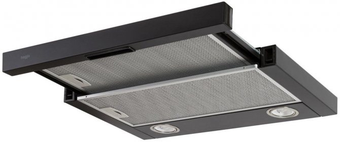 - Retirez le filtre de la hotte lui-même. Pour retirer le filtre situé horizontalement, il est nécessaire de mettre l'interrupteur en position «roll out». Pour atteindre la maille verticale du filtre, faites glisser le plateau.