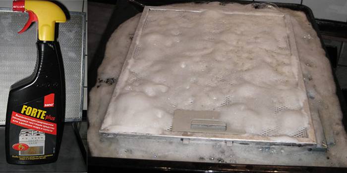 Pour retirer la graisse du filtre de la hotte, placez-le dans un récipient bas (par exemple, une plaque à pâtisserie) et remplissez-le d'eau chaude. Ensuite, endormez-vous uniformément ou remplissez le nettoyant. Le temps d'exposition est de 10 minutes. Lorsque vous utilisez des cure-pipes, sachez qu'ils ne doivent pas être utilisés plus de deux fois par an. Tout d'abord, cela concerne les filtres en aluminium, car ce matériau est moins stable chimiquement que l'acier.