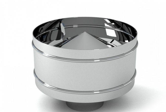 Les déflecteurs protègent le tuyau des débris et des précipitations. Mais le but principal des appareils est de protéger la sortie de la cheminée du vent. Le vent s'enroule autour du corps du déflecteur des deux côtés.