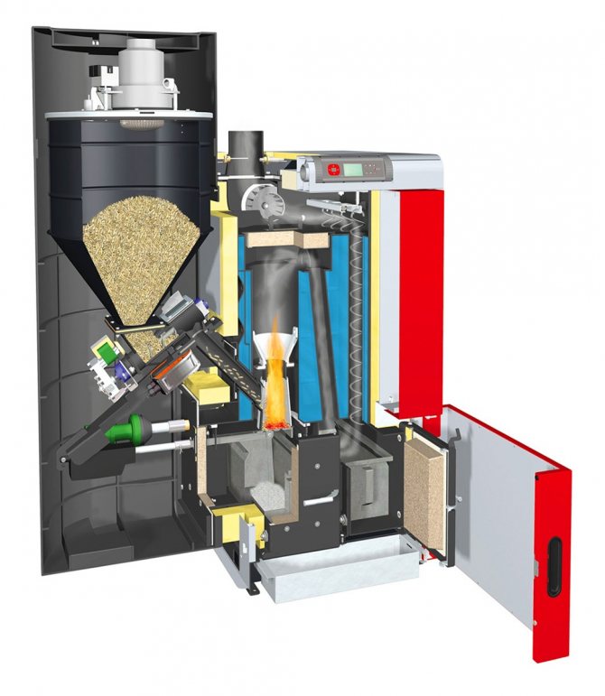 Les chaudières à combustible solide automatisées modernes ont un bunker spécial pour le combustible, qui lui permet d'être chargé et utilisé pendant plusieurs jours. Dans ce cas, l'alimentation en combustible du four s'effectue en mode automatique. Une telle chaudière ne nécessite pas de remplissage de carburant tous les jours, ce qui simplifie grandement son fonctionnement.