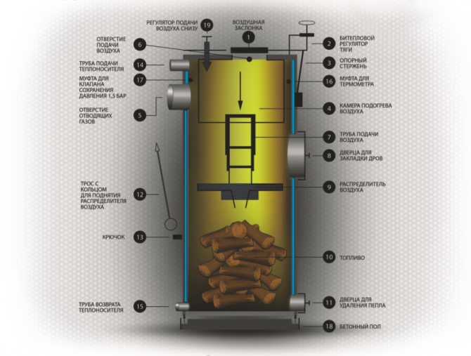 Pour optimiser la consommation de carburant et augmenter l'efficacité, des chaudières de chauffage domestique à pyrolyse pour combustibles solides ont été développées. Malgré la similitude des processus se déroulant à l'intérieur de la structure, leur principe de fonctionnement diffère des modèles décrits de combustion directe.