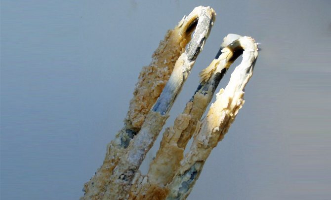 Les éléments chauffants sont les plus courants parmi toutes les chaudières électriques en général, mais ils présentent également un inconvénient désagréable particulier - une tendance à former du tartre sur les éléments chauffants, ce qui au fil des ans entraîne une diminution de l'efficacité de 10, 20 et même 30%. , la chaudière a besoin de plus d'électricité et de temps pour chauffer la même quantité de liquide de refroidissement à travers la couche de tartre.