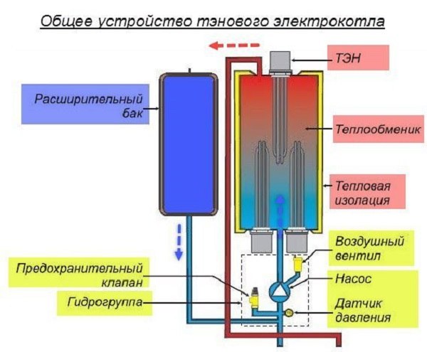 Le dispositif général d'une chaudière avec un élément chauffant. Source de la photo: b4b.su