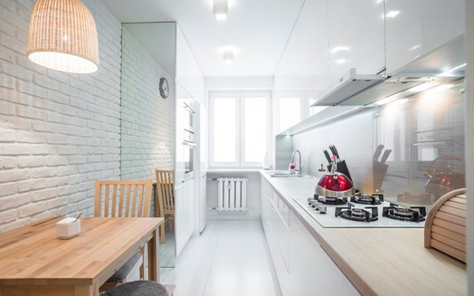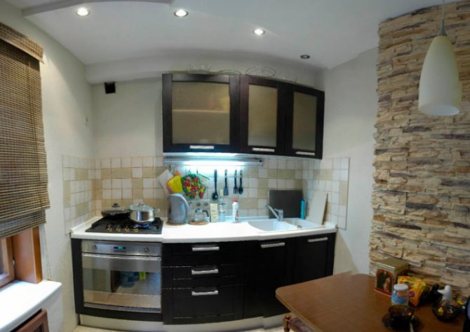 Pour cacher les conduites de gaz et d'eau, utilisez des meubles de cuisine ou formez des boîtes spéciales. Cela ressemble à ceci: