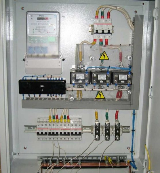 Si une grande puissance est allouée ou s'il existe un appareil de mesure à l'ancienne, un transformateur est installé sur chacune des phases. Pour prendre des mesures dans ce cas, vous devez connaître le rapport de transformation. Les lectures prises doivent être multipliées par ce facteur. Le chiffre résultant sera la consommation réelle.