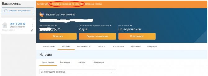 - Page personnelle de l'utilisateur sur le site Mosenergosbyt.