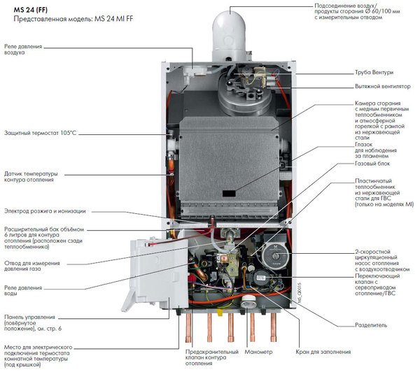 La liste des unités est petite, mais c'est le principal avantage des chaudières non volatiles. Moins il y a de pièces, plus la résistance et la résistance aux charges de la structure dans son ensemble sont élevées.