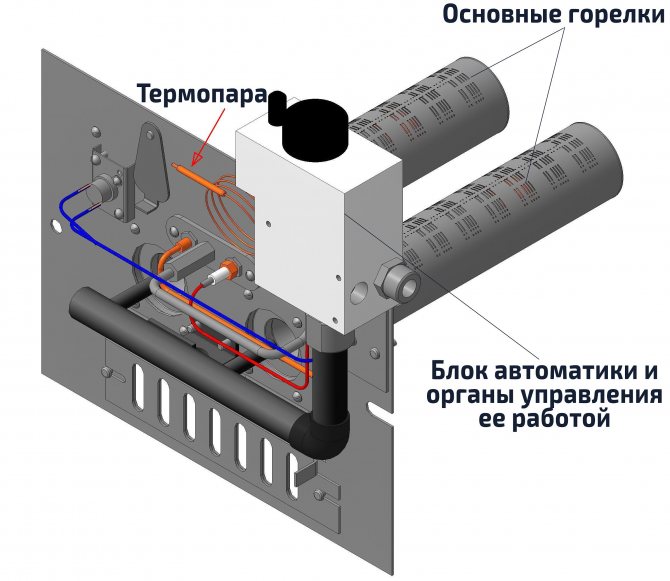 Les principaux éléments des unités non volatiles sont l'échangeur de chaleur principal (principal) et le brûleur à gaz. Ils assurent la fonction principale de la chaudière.
