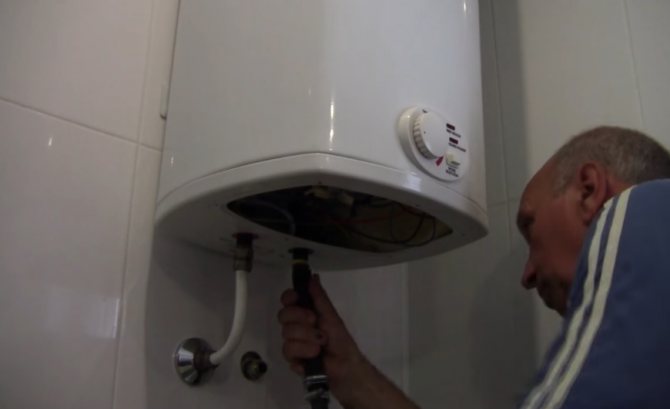 Noter! En raison du fait que le tuyau d'alimentation en eau froide a encore une certaine hauteur, l'eau restera toujours dans le réservoir (de 100 litres - pas plus de 10-15), même s'il semble que tout le liquide a déjà été vidangé. Ceci doit être pris en compte si la chaudière n'est pas prévue pour être utilisée en hiver. Pour vous débarrasser de toute l'eau, vous devez dévisser l'élément chauffant et vidanger l'eau à travers le trou de montage.