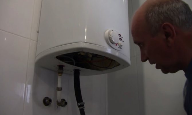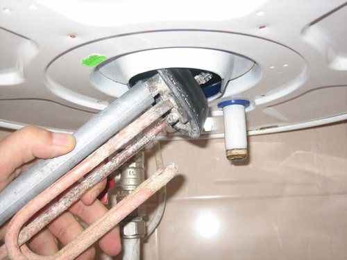 Si de l'eau fuit sous le couvercle du réservoir de stockage du produit, il est fort probable qu'une trop grande quantité de tartre s'est accumulée sur l'élément chauffant et doit être remplacée. Tout d'abord, vous devez acheter un élément chauffant similaire dans le magasin de pièces de rechange pour chauffe-eau, démonter l'ancien, nettoyer la surface intérieure avec du vinaigre ordinaire et de la soude - ce mélange corrode bien toute tartre.