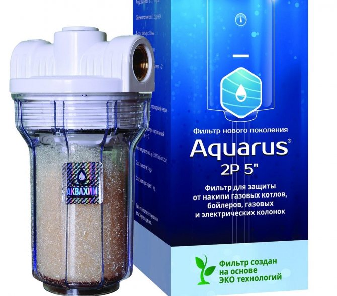Un modèle similaire peut être installé dans le pays ou dans un appartement. Le réactif à l'intérieur nettoie de la litière fine: sable, débris. Il neutralise également les particules de sel, de sorte qu'elles ne créent pas de dépôts de calcaire. Peut être utilisé pour les chaudières, les chaudières, les machines à laver et les lave-vaisselle.