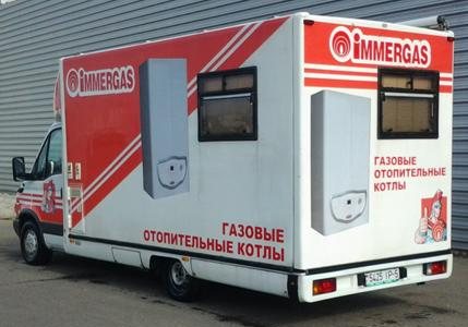 Immergas, le premier a fait son propre Info-mobile en Biélorussie. Il est équipé d'équipements Immergas. L'info-mobile est utilisé pour la présentation à l'acheteur, directement dans son établissement.