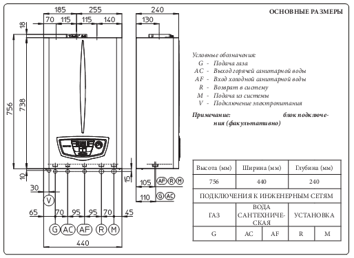 - la chaudière fonctionne à une pression de gaz minimale de 3,5 à 28 mbar; - la chaudière fonctionne à une pression d'eau du robinet minimale de 0,3 bar ou 2 l / min; - aucune polarité n'est requise lors du raccordement de la chaudière au réseau; - la chaudière peut fonctionner au gaz liquéfié (lors du remplacement des buses).