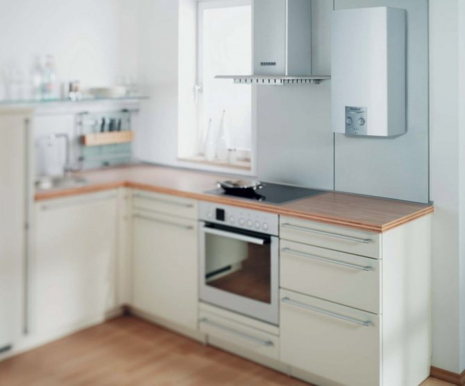 Type de ventilation. Si le modèle prévoit une ventilation naturelle, la hotte est située dans la zone de la cheminée. Une extrémité est située à l'intérieur du bâtiment et l'autre extrémité est sortie de l'espace de vie. Grâce à cela, il est possible de se débarrasser en temps opportun des fuites de gaz.