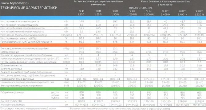 Considérez les caractéristiques techniques générales des modèles populaires de chaudières au sol Baksi Slim: