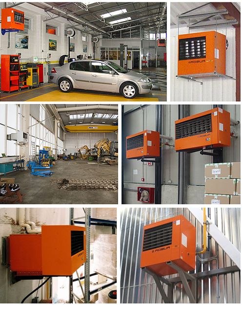 Le chauffage de l'air est plus efficace dans les salles d'exposition, les installations de production, les studios de cinéma, les lave-autos, les fermes avicoles, les ateliers, les grandes maisons privées, etc.