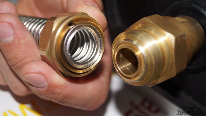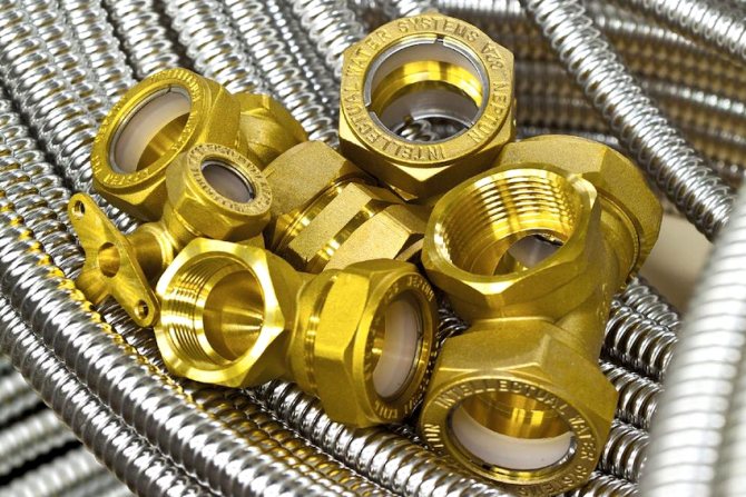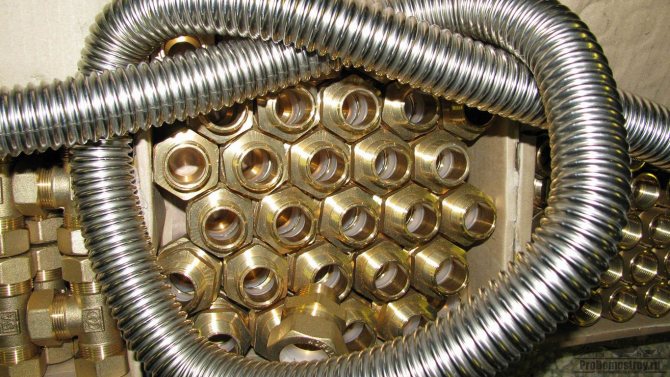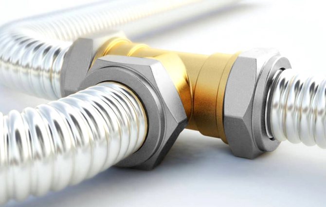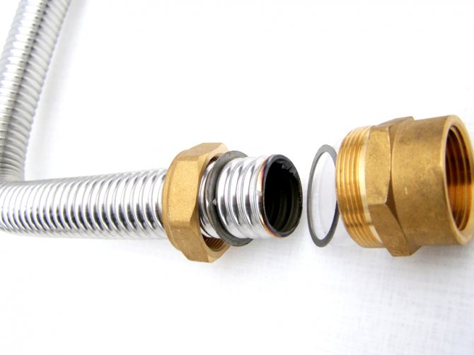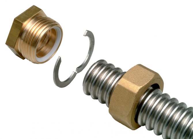 - Lorsqu'il devient nécessaire de raccorder un tuyau ondulé en acier inoxydable avec un autre matériau, il est recommandé d'utiliser des raccords en laiton.