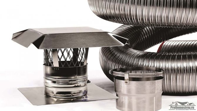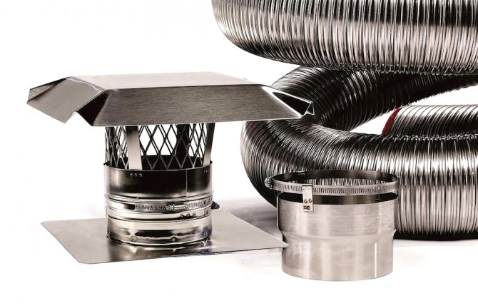 Un tuyau de cheminée classique en acier inoxydable ondulé de diamètre varie de 10 à 15 cm avec une longueur comprimée de 60 à 70 cm.À l'intérieur, il est renforcé avec un fil d'acier plus épais, ce qui lui donne la configuration souhaitée. Lorsqu'il est déployé, le tuyau peut mesurer jusqu'à trois mètres. Dans ce cas, vous pouvez sélectionner la longueur de cheminée requise.
