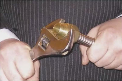 C'est avec un outil aussi simple que l'ensemble du système d'alimentation en eau interne est assemblé à partir d'un tuyau ondulé en acier inoxydable.