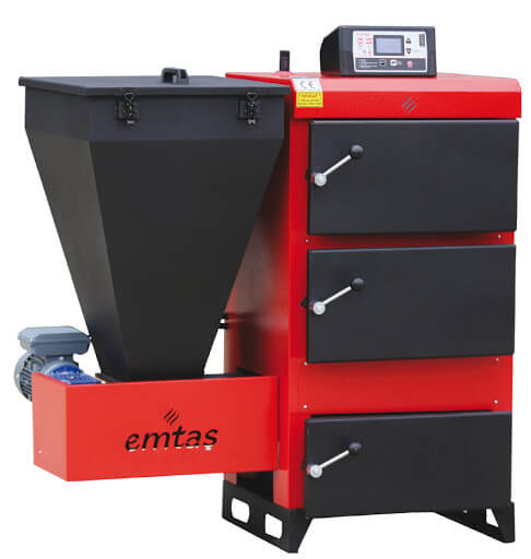 Une puissante chaudière domestique avec un bunker de dimensions impressionnantes et des composants importés (automatisme et brûleur). Il est connu pour sa grande fiabilité et durabilité, grâce à ses pièces en fonte (brûleur, porte de chaudière, grille) et un échangeur de chaleur en acier durable de 6 mm d'épaisseur.